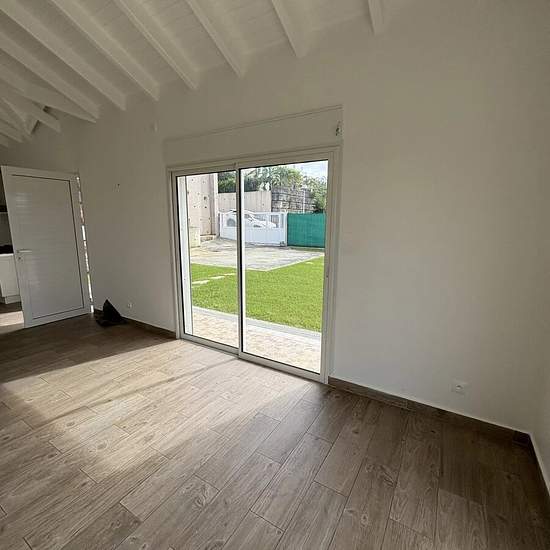Belle Villa T5, récente situé dans un lotissement qualitatif et calme, vue dégagée, à Morne Bourg, Petit-Bourg comprenant: 1 grand séjour ouvert sur une cuisine aménagée et semi-équipée d'une plaque de cuisson et d'une hotte, 1 cellier, 1 dégagement, 1 wc indépendant, 1 chambre parentale climatisée avec dressing et sa salle d'eau avec wc attenante, 3 chambres climatisées avec placard, 1 salle d'eau, 1 terrasse, 1 piscine au sel avec garde corps sur terrain de 808m2 clôturé avec portail électrique et portillon. Disponible de suite Loyer 2 150...