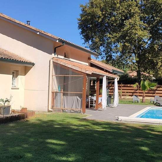 Maison non meublée à louer à l'année. Venez découvrir cette belle maison d'environ 116m² située sur la commune de Pontenx-les-Forges. Elle comprend une pièce principale avec cuisine ouverte sur séjour, trois chambres, une salle de bains avec douche et baignoire, un WC séparé, une mezzanine, un garage attenant et un petit chalet aménagé en chambre. A l'arrière de la maison , en bordure de piste cyclable, vous pourrez profiter d'une piscine et d'une belle terrasse. Le tout sur une parcelle d'environ 1000m². Location vide disponible début m...