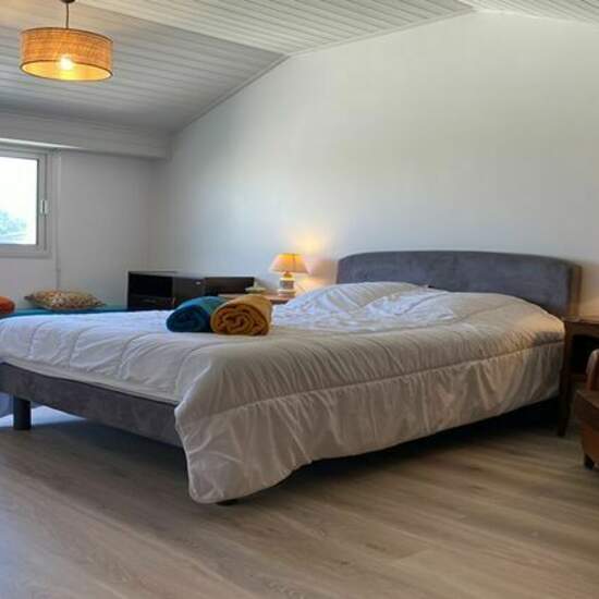 LOCATION VACANCES et TARIF A LA SEMAINE - Dans son écrin de verdure, cette maison aux beaux volumes, d environ 120 m2, décline une agréable entrée, un séjour/salon avec cheminée, une cuisine séparée ouverte sur le jardin et sa terrasse, une chambre (140), une chambre (2x090), une salle de bains, un toilette séparé, une buanderie. A l étage, un dégagement desservant une chambre (140), une grande chambre (140 + bz), une salle d eau et son toilette. Beau jardin clos, exposé Sud. Stationnement /le terrain.