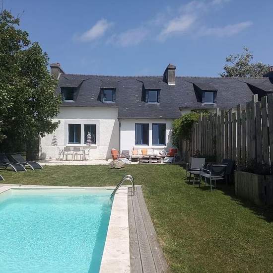 Charmante longère rénovée avec goût, la rénovation intégrale de la maison, du jardin et de la piscine date de 2020. Au RDC, cuisine aménagée équipée, pièce de vie donnant sur jardin avec piscine et terrasse exposé plein sud. Un chambre avec lit double, salle d'eau et wc indépendant. À l'étage 3 grande chambres et une grande salle d'eau avec wc. Maison très agréable à vivre, lumineuse, décorée avec goût dans un quartier résidentiel et au calme, toute proche des commerces de porspoder (Spar, supérette, boulangerie, bar tabac, coiffeur, pharmac...