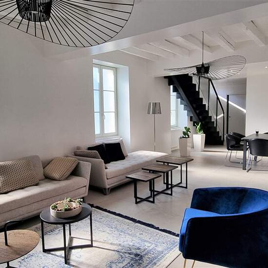 Centre-ville de Rambouillet, idéalement placée, gare et commerces à pied, Maison de ville ancienne (Intérieur Contemporain) de 5 pièces principales, d'environ 102m² habitables, rénovée entièrement en 2016. Elle se compose au rez-de chaussée d'une entrée avec wc, un vaste et lumineux séjour avec cheminée insert, cuisine aménagée et équipée (Porcelanosa), buanderie et chaufferie, accès terrasse. A l'étage un palier desservant 3 chambres avec salles d'eaux et parties dressings. Grenier. 2 Cours privatives, l'une à usage de terrasse végétalisée,...