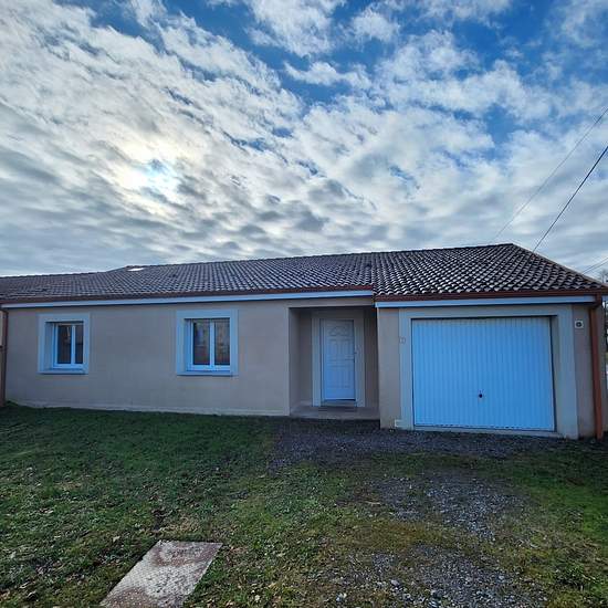 Agréable maison de Plain pied à 15 min de LIMOGES Maison de 2009 ! Elle se compose d'une entrée, agréable piece de vie avec cuisine ouverte, buanderie, 3 chambres, une salle d'eau Le tout avec un garage et un terrain plat et clos ! Facile d'entretien Commerces, école, commodités à 3 min en voiture A NE PAS MANQUER !