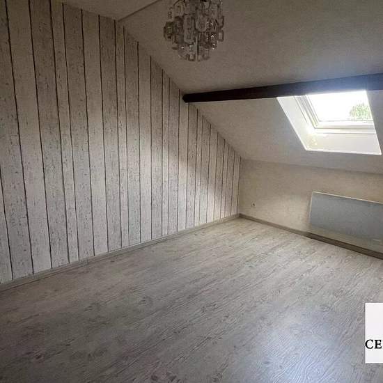 A louer 825€/mois C.C. Maison comprenant une entrée sur séjour carrelé de 29.80 m² ouvert sur une cuisine aménagée et équipée de 7.95 m², un bureau parqueté de 8.75 m² (possibilité de chambre), une chambre parquetée de 10.35 m², une salle d'eau carrelée de 4.51 m², WC; A l’étage : palier desservant 2 chambres de 10 et 12 m² au sol. Sous-sol total avec coin buanderie, cave et garage avec porte motorisée. Double vitrage avec volets bois. Chauffage électrique avec climatisation réversible dans la pièce de vie. Terrasse carrelée. Cabanon de jard...