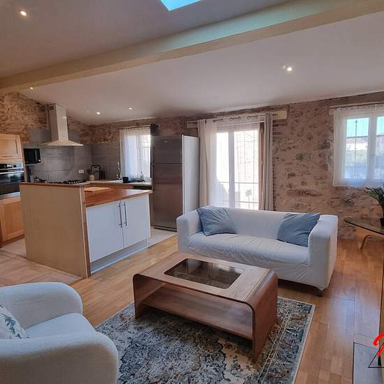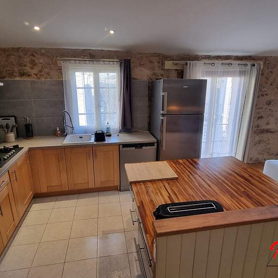SALSES-LE-CHATEAU - LOCATION MEUBLEE Découvrez cette très belle maison de village de 142m², meublée, composée : - Au RDC : grand garage de 68m² avec porte motorisée, terrasse (40m²) avec petite piscine/jacuzzi et cour. Vous trouverez également une partie couchage avec une chambre, salle d'eau, WC et coin rangement. Accès par le garage ou par la cour. - 1er étage : vous disposez d'une agréable pièce de vie avec séjour/cuisine d'environ 40m², avec poêle à granulés, climatisation réversible. La suite du couloir dessert une buanderie, une salle ...