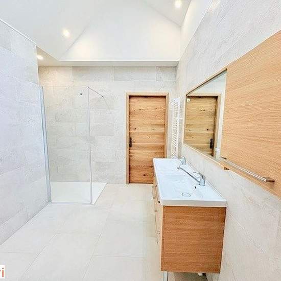 Bien d'exception maison individuelle de plain-pied au cur d'un parc paysager nichée au sein d'un parc paysager privé, aménagé et éclairé, cette maison individuelle entièrement rénovée offre un cadre de vie rare, alliant calme absolu, confort moderne et prestations de qualité. Dès l'entrée, vous découvrirez une atmosphère élégante et lumineuse. Le salon séjour avec cuisine ouverte d'environ 38 m² séduit par ses volumes et sa clarté, s'ouvrant sur une superbe terrasse exposée plein sud de 25 m², avec une vue dégagée. La maison, de plain-pie...
