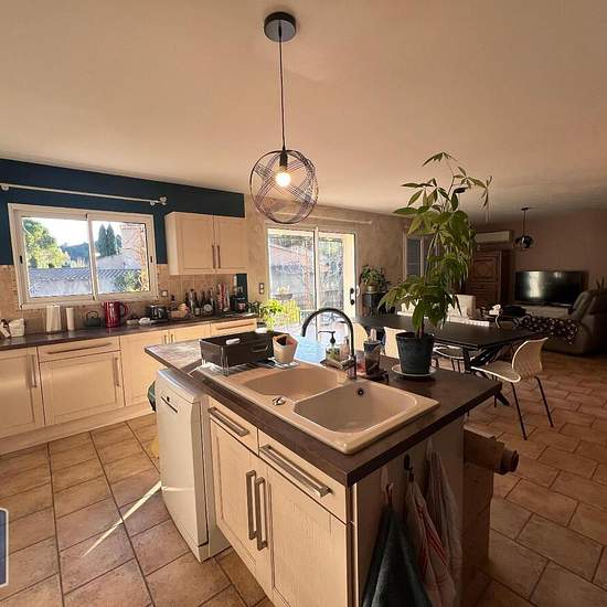 A louer sur Sauveterre - Villa familiale de 164.66 m², entièrement climatisée, avec piscine, dans un secteur agréable et recherché, idéalement situé entre Orange et Avignon. Cette magnifique maison de 6 pièces, moderne et avec de belles prestations vous offre au rez-de-chaussée : un vaste séjour de 43.86m² avec un poêle à bois pour les soirées hivernales, un espace TV chaleureux, une grande cuisine américaine aménagée et équipée avec îlot central ouvrant sur un cellier/buanderie et donnant accès au garage. Côté nuit, une belle suite parental...