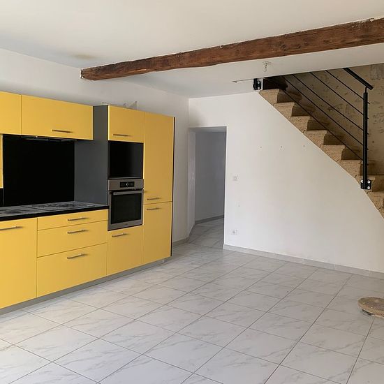 REF : 222 - DISPONIBLE DE SUITE ! Maison de bourg de 101 m2, sur deux niveaux, située au coeur de la bastide, proche de toutes les commodités ! Entrée, pièce de vie de 24 m2, cuisine 23 m2, chaufferie, wc. Atelier et cour agréable et sans vis-à-vis. À l'étage : palier, 3 chambres de 9,5 m2, 10 m2 et 17 m2 et salle d'eau avec wc. Prévoir souscriptions fournisseurs d'eau courante, électricité, gaz de ville et enlèvement ordures ménagères (USTOM). Loyer hors charges : 850 EUR / mois. Dépôt de garantie : 850 EUR. Frais d'agence pour mise en palc...