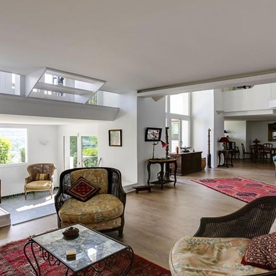 Situé dans une voie privée calme et recherchée, Française de Gestion vous propose ce magnifique loft meublé en duplex de 180 m². Au premier niveau : L'entrée dessert un bureau lumineux avec salle de douche attenante, une bibliothèque, ainsi qu'une chambre ; on y trouve également une chambre ouverte sur une terrasse, une salle de bains, des placards intégrés et un WC séparé. Au deuxième niveau (rez-de-chaussée) : L'étage dévoile un espace de vie exceptionnel, un vaste séjour et un salon d'hiver prolongés par une grande terrasse offrent un cad...
