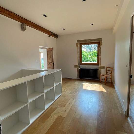 Maison À Louer. POUR CANDIDATER : cliquez sur "envoyer un message" ou "contacter l'agence", vous recevrez un mail pour pré-valider votre dossier et obtenir un rendez-vous. SOUCIEU EN JARREST, Maison d'exception de 140 m² sur un terrain d'environ 500 m². Elle est composée au rez-de-chaussée d'une grande pièce de vie, d'une cuisine ouverte meublée et équipée (four, lave vaisselle, plaque, hotte, micro ondes), une buanderie et un WC avec lave mains. L'étage comporte un grand pallier idéal pour du télétravail, deux grandes chambres dont une ave...