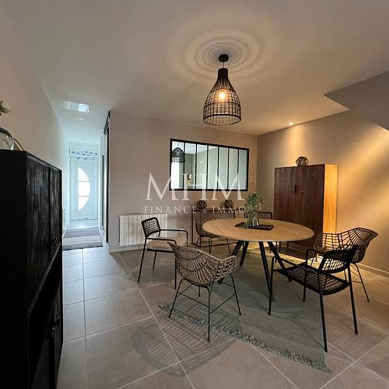 LOCATION MEUBLÉE Saint Amand Les Eaux, à 15 minutes d'orchies Maison spacieuse rénovée à neuf 115m2 habitables (141 m2 au sol) avec jardin. Cette maison se compose d'un hall d'entrée desservant une chambre/bureau, un wc individuel, un vestiaire, une salle à manger/salon/cuisine équipée ouverte. Une buanderie et une salle de bain complètent le rez de chaussée. A l'étage, trois chambres sont une avec sa salle d'eau. Stationnement facile. Loyer : 1350 EUR + taxe des ordures ménagères 11EUR Honoraires de location : 1279.83EUR inclus état des lie...