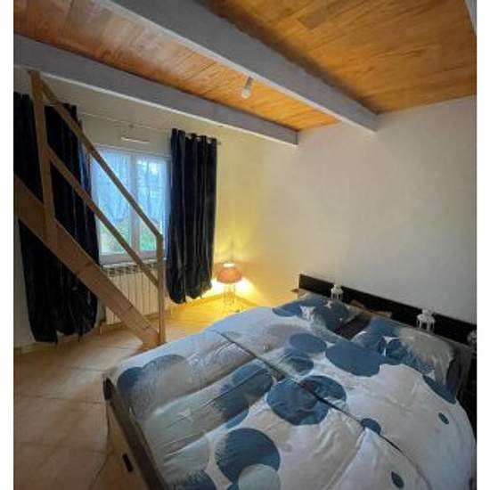 Logement Haut de maison F5 meublé-3 chambres+grande mezzanine avec couchage extra (102m2 total), jardin indépendant arboré, équipé esprit guinguette+terrain de boules-à 2 pas arrêt de bus, centre ville et commerces. Parfait aussi pour loger des salariés en mission, entreprise,fonctionnaire.Disponible dès le 1/9/2025 965 euros/mois, forfait ménage, assurance villégiature demandée à l'entreprise. L'habitation comprend: - une véranda disposant de grands placards de rangement de chaque côté - l'entrée dessert: un couloir, une grande salle de bai...