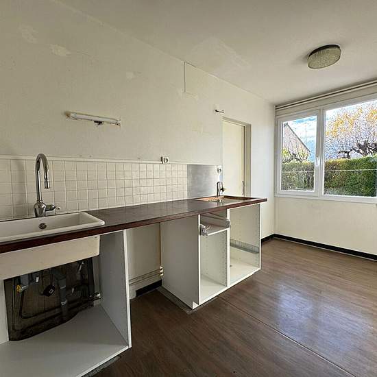 L'Adresse Laval vous propose à la location cette maison de plain-pied d'environ 95 m² au coeur de Saint-Berthevin. Cette maison se compte d'une spacieuse entrée desservant un salon séjour lumineux avec une cheminée à foyer ouvert et une cuisine fermée, à aménager et équiper à votre convenance ainsi qu'un cellier. Un dégagement dessert une salle de bains, 3 chambres avec accès direct au terrain, une petite pièce supplémentaire avec point d'eau. La maison dispose également d'un garage d'environ 25m², une cave et un grenier, le tout sur un terr...