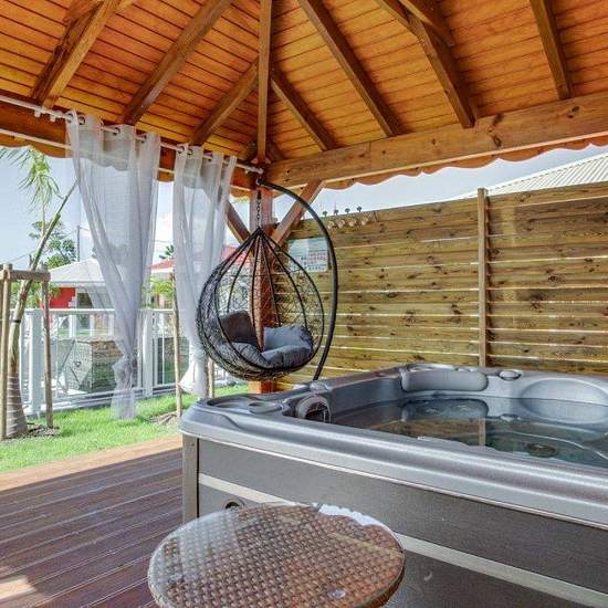 Saint François Guadeloupe Villa individuelle **** d'une superficie de 110 m² pour 4 à 7 personnes Dans son jardin exotique, la Villa dispose de deux terrasses entre lesquelles vous bénéficierez d'une piscine exterieure, d'un vaste séjour-cuisine où vous pourrez préparer vos repas en toute autonomie, d'une suite parentale avec lit Queen size et salle de bains privative avec douche et WC, d'une deuxième chambre avec lit Queen size et d'une troisième chambre avec deux lits simples ou lits rappochés. Vous disposerez d'une seconde salle de bains ...