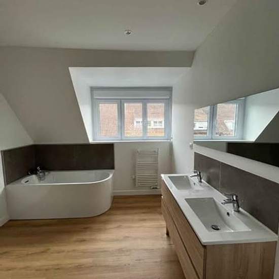Maison à louer – 90 m² – Saint-Martin-lez-Tatinghem Maison mitoyenne d’environ 90 m², située dans un quartier très calme, à 1 minute à pied du Carrefour et proche de toutes commodités. Composition : Rez-de-chaussée : Cuisine ouverte semi-équipée Salon / salle à manger Buanderie WC Débarras sous escalier À l’étage : 3 chambres d’environ 10 m² Salle de bain avec double vasque, douche et baignoire Extérieur : Jardin entièrement clos Cabanon Stationnement : 2 places de parking devant la maison Chauffage : pompe à chaleur air/air DPE : C Disponib...
