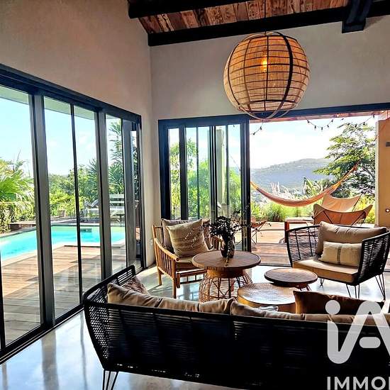 Iad France - Fabrice Caille vous propose : Location meublée - Maison d'Architecte Contemporaine à Saint-Gilles les Bains (Mont Roquefeuil) 190 m² + Dépendance T2 - 3 chambres - Résidence sécurisée - Jardin paysager Dans le secteur recherché et résidentiel de Mont Roquefeuil, cette maison d'architecte construite en 2021 vous séduira par son design moderne, ses prestations haut de gamme et son cadre naturel privilégié. La maison principale (190 m² sur 2 niveaux) comprend : 3 chambres spacieuses offrant confort et intimité Un vaste séjour lumin...