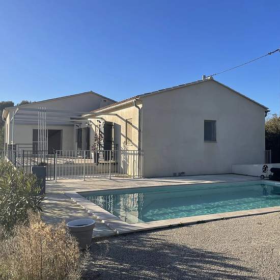St Saturnin les Apt, belle maison récente T5 de 185 m2 sur 1150 m2 de terrain avec piscine. L'habitation se compose d'une belle pièce de vie de 50 m2 avec cuisine ouverte et mezzanine, 4 chambres, 2 salle de bains, 2 wc, garage de 28m2. Bel espace piscine avec jolie vue dégagée plein sud. Excellent état pour cette maison tout confort non loin du village et de ses commerces. Belle opportunité!