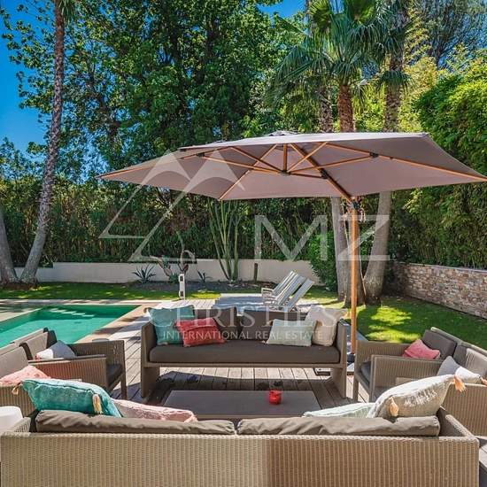 Idéalement située à quelques pas de la célèbre Place des Lices et du centre de Saint-Tropez, cette propriété au style contemporain offre un parc parfaitement arboré d'environ 1 200m2. Elle bénéficie de 3 niveaux, offrant un intérieur lumineux et ouvert par ses grandes fenêtres, mêlant le in & out, un agréable séjour, une salle à manger, une cuisine équipée, plusieurs terrasses ensoleillées et ombragées, un terrain de pétanque, un pool house, sa cuisine d'été extérieure équipée avec coin barbecue et sa piscine. Elle dispose de 4 chambres dont...