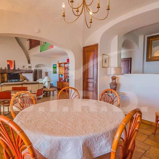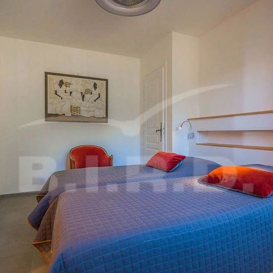 Magnifique Villa 5 pièces 210 m2 sur 2 niveaux. Elle propose : un séjour/salle à manger donnant sur une belle terrasse. Une grande chambre et sa salle de bains avec 1 grand-lit (160 cm, longueur 200 cm) . Une Cuisine équipée : four, lave-vaisselle, 4 plaques vitrocéramiques, grille-pain, bouilloire électrique, micro-ondes, cafetière électrique . Une buanderie attenante : lave-linge. WC invités À l'étage supérieur: 1 chambre avec 1 grand-lit (1 x 140 cm, longueur 200 cm) et sa salle de douche et 1 chambre avec 1 grand-lit (160 cm, longueur 20...