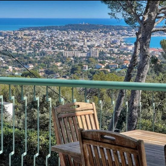 Bien rare sur le marché, cette superbe villa de 260 m² située à Vallauris offre une vue panoramique imprenable sur la mer, dans un environnement résidentiel calme et très recherché, à seulement quelques minutes de Cannes et à proximité de la Mougins School. Pensée pour une clientèle exigeante, la propriété propose 4 chambres avec lits doubles, 5 salles de bains et peut accueillir jusqu'à 8 personnes. Les espaces de vie, lumineux et ouverts, s'accompagnent d'une cuisine entièrement équipée et de prestations haut de gamme (climatisation, Wi-Fi...