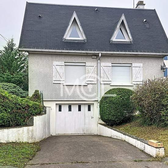 RARE SUR LE SECTEUR ! Jolie maison familiale de 103.13m² sur sous-sol total avec garage et jardin. Elle offre au rez de chaussée une cuisine aménagée indépendante, une lumineuse pièce de vie avec accès terrasse et jardin, une grande chambre, une salle de bains avec baignoire et douche et double vasques, un wc indépendant et de nombreux rangements. L'étage dessert une chambre, un bureau de 8.08m² ou chambre d'enfant en sous pente, une salle de bains avec wc. Le sous-sol dispose d'un grand garage, d'une grande pièce annexe, d'une buanderie et ...