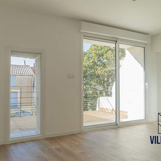 En plein cœur du chaleureux village de Villeveyrac, l'agence Villemont Immobilier vous propose un duplex de 5 pièces, situé au premier et dernier étage d'une charmante maison de village. Ce bien d'une superficie habitable de 103 m2, a récemment bénéficié d'une rénovation complète (DPE B), alliant modernité et charme de l'ancien. Au premier étage, vous disposerez d'un vaste séjour - salle à manger de 32m2 comprenant une cuisine ouverte sur le salon. Grâce à une double exposition Est/Ouest, cette lumineuse pièce de vie offre un accès à une ter...
