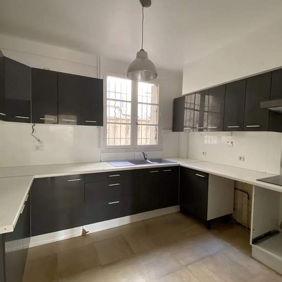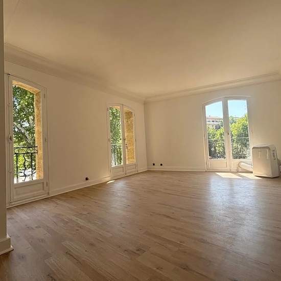 Aix, La Rotonde, dans un bel immeuble avec ascenseur au 1er étage sur 4 Logement traversant avec 4 expositions, composé d'une entrée, un pièce de 62m² lumineux avec vue dégagée sur la Rotonde, une cuisine aménagée avec meuble haut et bas gris laqué, plaques et hotte, de 5 pièces lumineuses et de deux salles de bains avec meuble vasque et de deux W.C . Fibre optique Parking public à proximité .