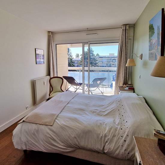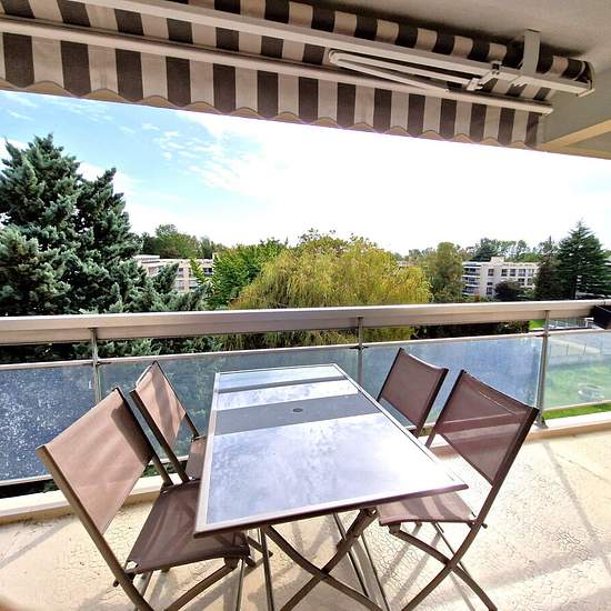 A proximité des écoles et du tramway, au 3ème et dernier étage d'une résidence de standing avec piscine, bel appartement lumineux exposé sud et ouest comprenant une entrée avec placard, un WC indépendant, un séjour avec cheminée, une cuisine, un dégagement avec penderie, 3 chambres, une suite parentale avec dressing et salle de bain avec WC, une salle d'eau avec WC. L'appartement bénéficie de 2 balcons, l'un desservi par le séjour au sud et l'autre par 2 chambres à l'ouest, s'élargissant pour former une loggia pour la suite parentale. Belles...