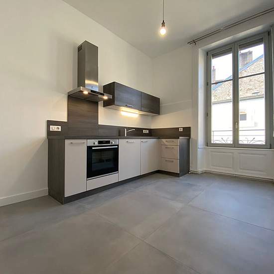 Charmant T6, refait entièrement à neuf en 2022, proche centre, 3 rue Delavelle, 1er étage, 165 m², cuisine équipée, salon avec balcon, séjour avec cheminée d'ornement, 4 chambres avec placards, salle de bains avec douche carrelée, 1 parking réservé dans cour, chauffage collectif inclus, double vitrage neuf, volets roulants électriques, cave, libre au 13/03/2026.