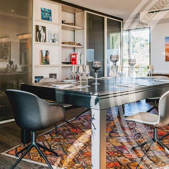Magnifique Triplex d'architect avec piscine sur le toit. Superficie Habitable: 250 mètres carrés. Superficie des terrasses: 150 mètres carrés. 2 salons très lumineux. 3 chambres en suites. 3 salles de Bain. 1 bureau 1 hammam 1 piscine chauffée. ------------------- 1er étage: Chambre 1 (master): 1 lit double, salle de bain avec douche, baignoire, wc et dressing. Chambre 2: 1 lit double, salle de bain avec douche et wc. Chambre 3: 1 lit double, salle de bain avec douche et wc. Toilettes invités. 2ème étage: Vaste salon lumineux avec cheminée e...