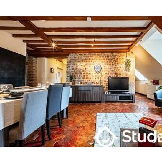 T6 Duplex Centre Ville 8 Rue Sambin, à côté de la place Saint Bernard (à 200m de la BSB) 3ème et dernier étage, calme et lumineux (traversant), 4 chambres, 2 salles de bains, grand séjour, bureau, cuisine aménagée et équipée, 1 place de parking dans cours intérieure fermée (portail automatique), grande cave au sous sol. Appartement liant l'ancien (mur en pierres apparentes, sol en tomettes, poutres en chêne) au moderne (escalier en verre, cuisine en inox, vasques rondes et style de salle de bain contemporain), totalement meublé, literie et m...