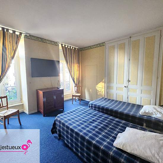 Le Majestueux**** Découvrez votre futur pied-à-terre à deux pas des thermes ! Situé rue Carnot, à seulement 200 mètres à pied de l'établissement thermal, ce charmant appartement de 95 m² au 1er étage d'un immeuble de 2 étages vous séduira par son confort et son emplacement idéal. Traversant, il offre une belle luminosité avec des vues sur la rue et un jardin (non accessible). Entièrement équipé, il est parfait pour un séjour détente, que vous veniez en couple ou entre amis (jusqu'à 6 personnes). Composition de l'appartement 2 grandes chambre...