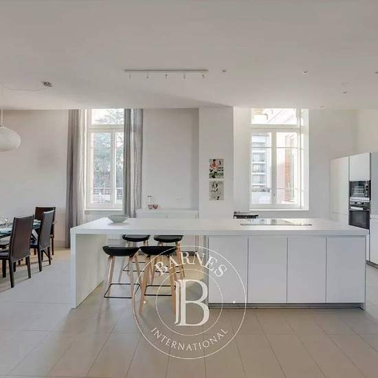 LYON 5 - DEBROUSSE. Situé au 3e étage avec ascenseur dans l'ancien hôpital Debrousse, un monument classé et chargé d'histoire, cet appartement d’exception de 179,37 m² profite d’une vue époustouflante sur Lyon. Il se compose d'une entrée, d’une grande pièce à vivre avec cuisine ouverte intégrée et équipée de la marque Bulthaup ainsi que d’une buanderie. La partie nuit totalise 5 chambres dont une suite parentale, une salle de bains et une salle d'eau. Une cave et un garage double complètent ce bien. Zone soumise à l’encadrement des loyers – ...