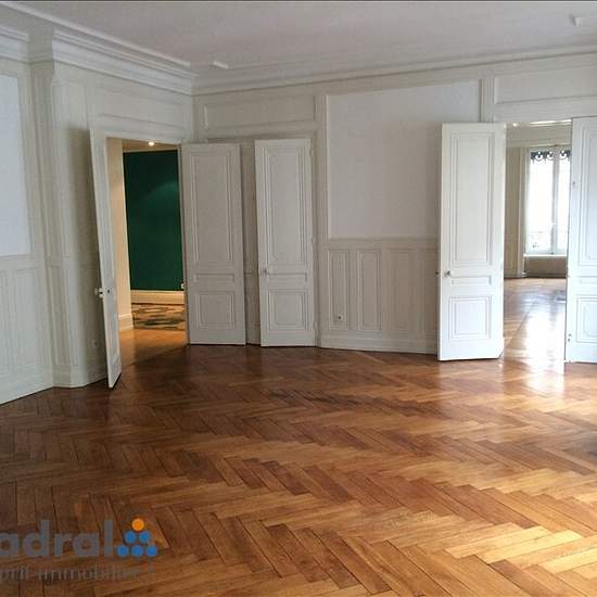 A LOUER - LYON 6, avenue Foch, à proximité du Parc de la Tête d'Or dans bel immeuble ancien avec ascenseur. Appartement F7 de 268.82 m² au 3ème étage comprenant : une grande entrée, une cuisine aménagée, et équipée avec four et plaques de cuisson, un grand séjour et une grande salle à manger, quatre chambres, deux bureaux, une salle de bains, deux salles de douche et deux WC. Chauffage individuel gaz avec chaudière. Zone soumise à encadrement des loyers : Prix de référence : 12.30 euros/m² Prix majoré : 14.80 euros/m² Les informations sur le...