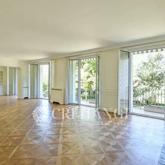 A propos de ce bien Très bel appartement familial de 164 m² avec ascenseur, situé dans le centre de Saint-Germain-en-Laye, sans aucun vis-à-vis et entièrement au calme. Il se trouve dans une résidence de standing, à 12 minutes à pied du RER et à 5 minutes de la place du Marché. L'appartement se compose d'une grande entrée menant vers un vaste séjour avec cheminée et une salle à manger, tous deux ouverts sur un balcon filant qui s’étend sur toute la largeur de la façade, avec une belle vue sur les jardins de la résidence. La cuisine est sépa...