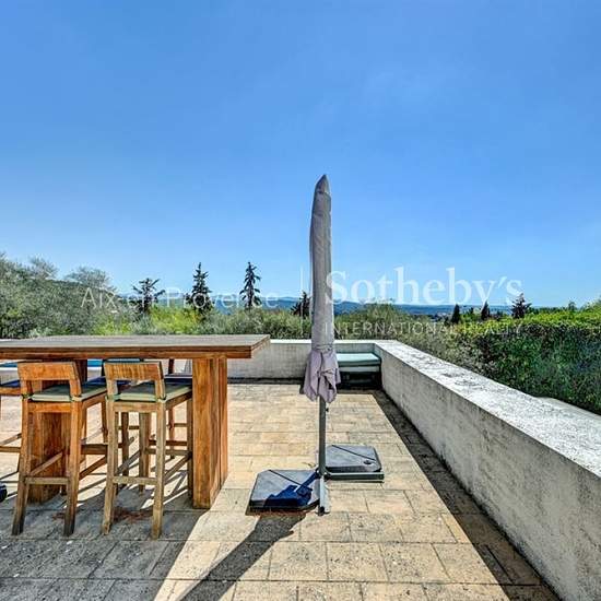 Maison familiale à Aix En Provence de 206m2 sur un terrain de 900 m2 au calme composé de deux grandes terrasses avec une vue panoramique sur la ville. Ses pièces se répartissent ainsi : une salle à manger, un salon avec cheminée, une cuisine américaine, 5 chambres (dont une suite parentale), 3 salles de bains, 4 Wc séparés, une buanderie ainsi que de nombreux placards, une piscne chauffée, portail électrique. Location meublée à l'année. Loyer 4000 € + 300 € charges Honoraires 2678 € dépôt de garantie 4000 €. ( Mandat 739).