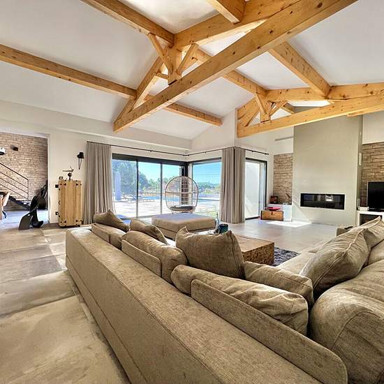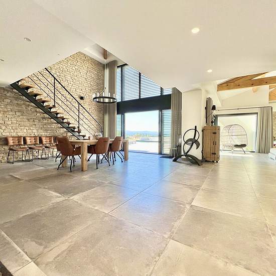 AIX EN PROVENCE Idéalement situé dans un quartier calme et recherché, superbe villa contemporaine de 600 m² sur une parcelle de 4000 m² avec piscine avec magnifique vue dégagée. Au rdc : , séjour / salon cuisine d'une superficie d'environ 120 m², une mezzanine / bureau de 25 m², 4 suites avec rangements et salle de bains. La maison dispose également d' une buanderie, un home cinéma, une cave, et nombreuses dépendances Deux grands garages + abri voitures. Produit rare, très belles prestations.