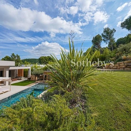 Villa Contemporaine de 350 m² à Ventabren – Élégance et Sérénité Nichée au cœur de la commune de Ventabren, cette villa moderne de 350 m² se distingue par son atmosphère paisible et raffinée. Dès l'entrée, vous serez séduit par un hall spacieux, sublimé par une cave à vin vitrée, véritable signature de l'élégance. Le rez-de-chaussée abrite trois chambres généreuses, chacune disposant de sa propre salle d'eau avec WC, assurant ainsi confort et intimité à tous les résidents. Le niveau principal offre un vaste salon-séjour lumineux, s'ouvrant s...