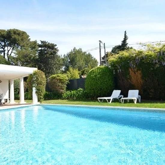 A propos de ce bien LOCATION A L'ANNEE - Villa californienne, récemment rénovée dans un style contemporain, d’une surface de 180 m2 sur un jardin de 1000 m2. La villa comprend : un séjour/salle à manger, une cuisine dinatoire toute équipée, une lingerie, une chambre de maitres, trois autres chambres doubles, 2 salles de bains et une salle de douche, et un studio indépendant avec cuisine, une grande terrasse sur le toit.. Piscine pouvant être chauffée, jacuzzi, villa climatisée, parking couvert, alarme, BBQ , coffre-fort…
