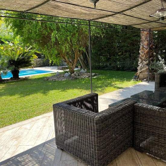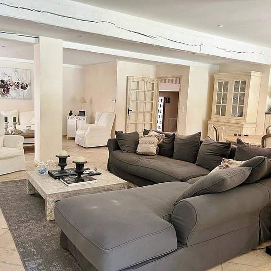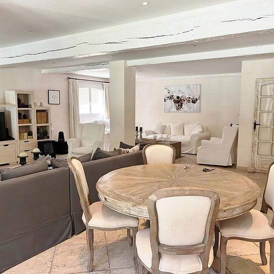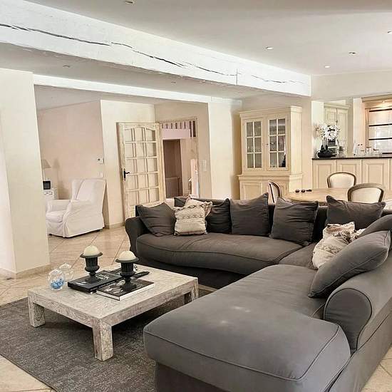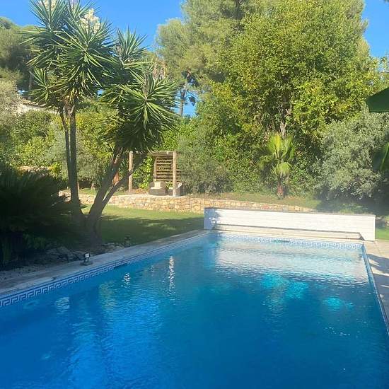 LOCATION A L’ANNEE - Villa Provençale, de 400 m2 sur un terrain paysagé de 2000 m2 avec piscine. La villa comprend un beau séjour, deux cuisines, 5 chambres, 5 salles de bains, 2 salles d’eau. Un appartement de gardien avec 2 salles de bain, une petite cuisine, 2 chambres (4 couchages). Chaudière au fuel, pompe à chaleur, salle de bain avec douche et WC à la piscine. Climatisation dans toute la villa, salle de sport indépendante. Garage couvert pour 2/3 voitures, plus deux parkings. Système d’alarme. 2 box SFR et Orange.