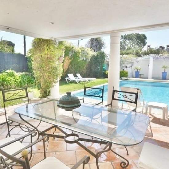 LOCATION A L'ANNEE - Villa californienne, récemment rénovée dans un style contemporain, d'une surface de 180 m2 sur un jardin de 1000 m2. La villa comprend : un séjour/salle à manger, une cuisine dinatoire toute équipée, une lingerie, une chambre de maitres, trois autres chambres doubles, 2 salles de bains et une salle de douche, et un studio indépendant avec cuisine, une grande terrasse sur le toit.. Piscine pouvant être chauffée, jacuzzi, villa climatisée, parking couvert, alarme, BBQ , coffre-fort… Afficher le téléphone