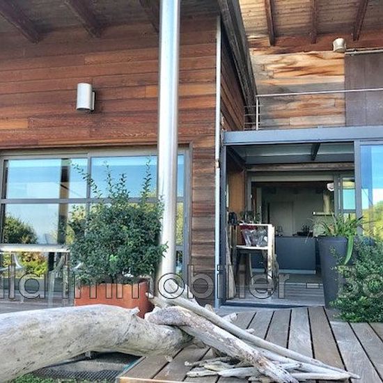 Élégante association de bois et de métal pour cette splendide demeure en R+1 moderne et atypique située dans un environnement végétalisé. Véritable havre de paix au coeur de Cardo pour cette villa d'une superficie habitable de 190m2 édifiée sur un terrain de 1500m2. Ce bien se compose comme suit : Un vaste salon ouvert sur cuisine américaine avec accès à la terrasse couverte dominant la mer, un wc indépendant, une chambre parentale (salle d'eau et dressing). À l'étage : un bel espace bureau, une salle de bain, deux chambres avec balcon, un d...