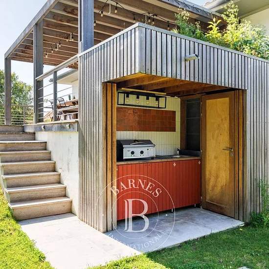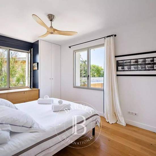 Située à quelques minutes de la plage de la Côte des Basques à Biarritz, cette villa de 210 m² offre un parfait équilibre entre intimité, confort et convivialité. Conçue pour accueillir de 8 à 10 personnes, elle saura charmer familles et groupes d’amis en quête de tranquillité, tout en étant proche du centre-ville. L’espace de vie se compose d’une pièce lumineuse ouverte sur le jardin, d’un salon principal jouxtant une salle à manger conviviale pouvant accueillir jusqu’à 10 convives, ainsi que d’une grande cuisine ouverte. Un second salon pl...