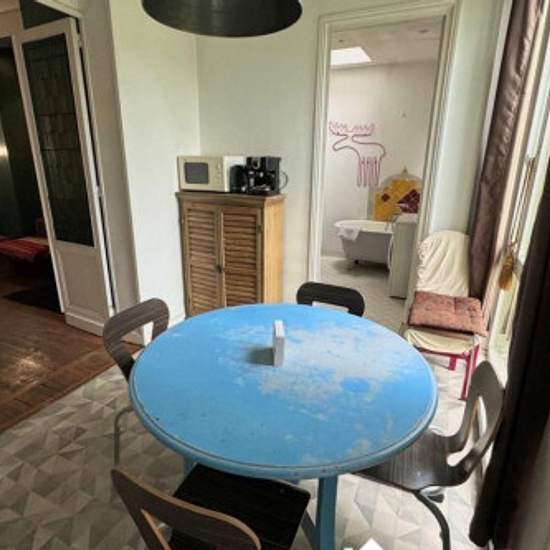 Grand appartement sur 2 niveaux (1er et 2eme étage) Niveau 1 : - Une chambre avec sa salle de bain privative - Une chambre avec mezzanine Un grand espace à partager avec salon, salle à manger kitchenette, équipée, Niveau deux : 2 chambres Petit espace Une salle de bain Petite kitchenette Idéal pour 4 colocataires ou famille avec enfants L'appartement de 100m2 est a loué dans son ensemble, niveau 1 et niveau 2 : - 200 € pour l'intervention d'une femme de ménage trois heures par semaine. Updated on 17/12/2025 Mise à jour le 17/12/2025