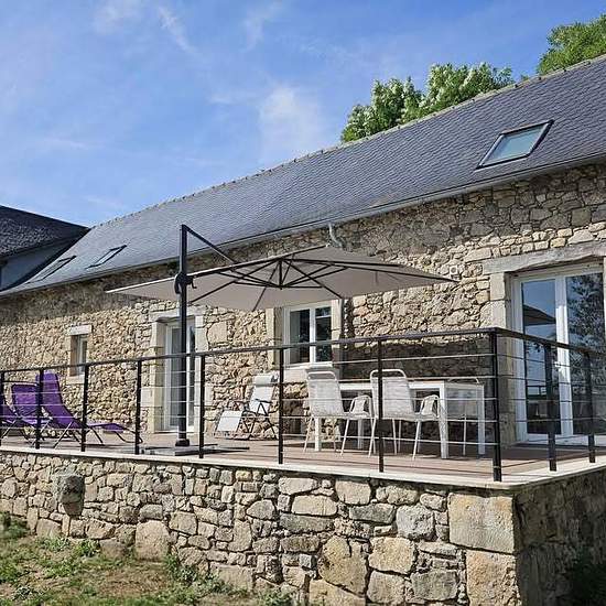 Bonjour. En Aveyron. Le gîte de La Garrigue se trouve dans un ancien corps de ferme situé sur les hauteurs de la vallée de l'Aveyron, dans un environnement calme et paisible. Il peut accueillir jusqu'à 8 personnes avec ses deux chambres avec chacune un lit en 160cm, une chambre ouverte avec un canapé lit confortable en 140cm, d'un canapé lit en 140cm dans le salon. Le gîte fait 110 m² (sans compter une grande mezzanine), dispose de deux salles de bain, trois toilettes, d'une cuisine toute équipée, d'une buanderie (lave-linge, sèche-linge, pl...