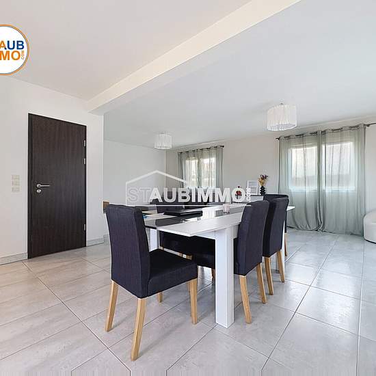UNIQUEMENT contacter Nicolas au zéro 7 ou EMAIL pour toute demande de visite. NUR kontaktieren Nicolas unter +33 (0)7 oder per E-Mail an EMAIL für etwaige Besichtigungsanfragen. ONLY contact Nicolas at +33 (0)7 or EMAIL for any visit requests. Location Buschwiller, découvrez cette belle maison de 108 m² entièrement meublée. Elle comprend au rez de chaussée une entrée, un lumineux salon séjour donnant accès à une belle terrasse et au grand jardin, une cuisine ouverte aménagée et équipée et une salle d'eau équipée avec douche et wc. A l'étage ...
