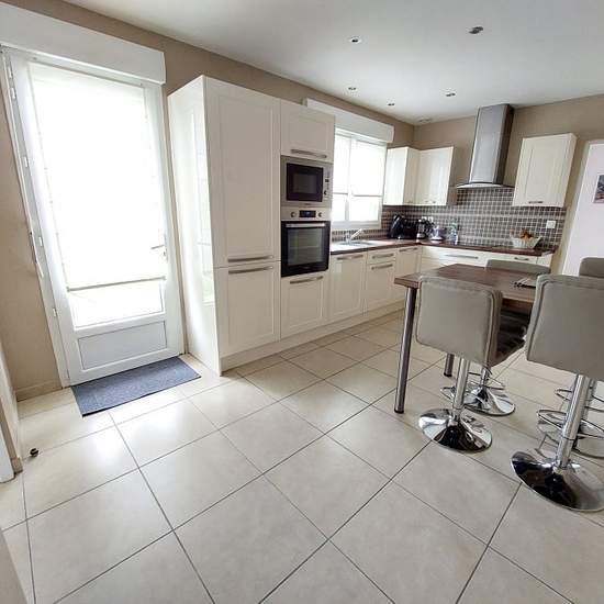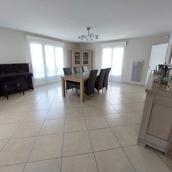 PAVILLON INDIVIDUEL DE PLAIN PIED A CAMBRAI. Situé à proximité du centre ville, du centre hospitalier et du centre commercial CORA, pavillon individuel de plain pied de 146 m2 très lumineux sur un terrain de 1 030 m2 comprenant : - hall d'entrée avec grand placard, salon/salle à manger de 45 m2 avec poêle à granulés silencieux RIKA, cuisine entièrement équipée (four, plaques induction, hotte, lave-vaisselle, micro-onde, réfrigéteur/congélateur), 4 chambres avec placard (15, 13, 13 et 9m2), bureau, salle de bain avec baignoire et douche, wc,...