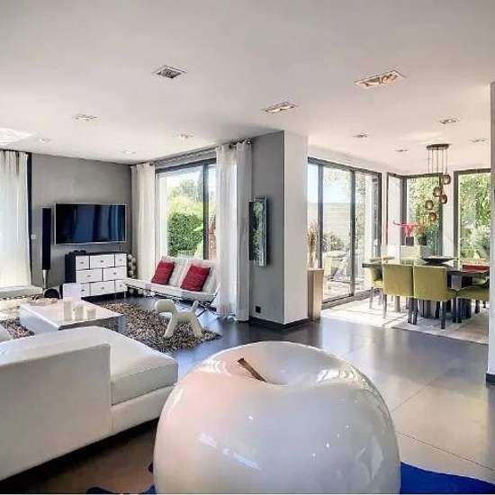 A propos de ce bien LOCATION A L'ANNEE OU SAISONNIERE DEMANDEZ NOUS LES TARIFS - Cannes Oxford, a 5 minutes de la Croisette, jolie villa moderne d’architecte de 285 m2, avec un beau jardin, plusieurs terrasses et une piscine. La villa sur 3 étages comprend : au rez de jardin, un séjour double avec coin salle à manger et cuisine moderne ouverte, toute équipée, une chambre avec salle de douche et toilettes séparées. Au premier étage, une chambre de maitre en suite avec salle de bain (bain et douche) et un dressing, et deux autres chambres, en...