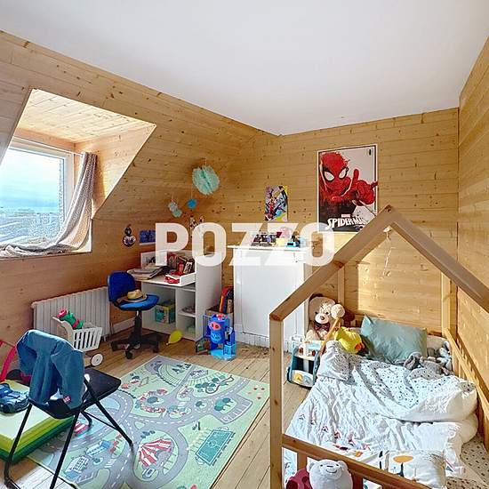 Maison de type F6 à louer sur Tourlaville avec 2 garages et une véranda de 22m² comprenant: au rez de chaussée: une entrée, un coin buanderie avec chaufferie et les 2 garages. Au premier étage: une cuisine aménagée et équipée avec coin re pas de 17.80m², une salle de 18m², un salon de 20m², une salle de bains, un wc et une chambre. Au deuxième étage: trois chambres dont une avec dressing de 16m², une autre chambre avec mezzanine et poêle à granulés de 44m² et 18m² et une autre de 11m². Chauffage individuel au gaz. Cour de 40m². LIBRE DE SUIT...