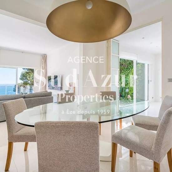 Eze bord de mer : Perchée sur les hauteurs prestigieuses d'Èze et à seulement 10 minutes de Monaco, venez découvrir cette villa d'architecte d'environ 200 m2. Elle sera vous séduire grâce à sa modernité, ses prestations, sa luminosité et surtout grâce à sa vue panoramique sur la mer et les montagnes. Composée d'une cuisine américaine équipée s'ouvrant sur un séjour lumineux, de 4 chambres avec chacune leurs salles de bains. Elle dispose d'une belle piscine entourée de spacieuses terrasses embellissent l'extérieur. Un garage double complète c...