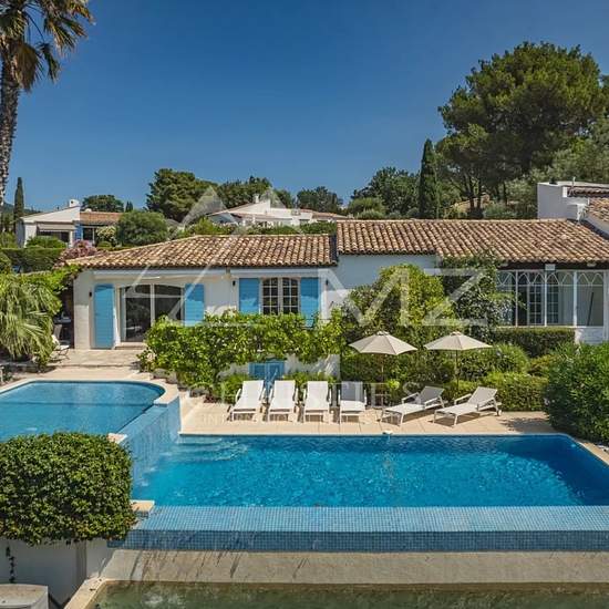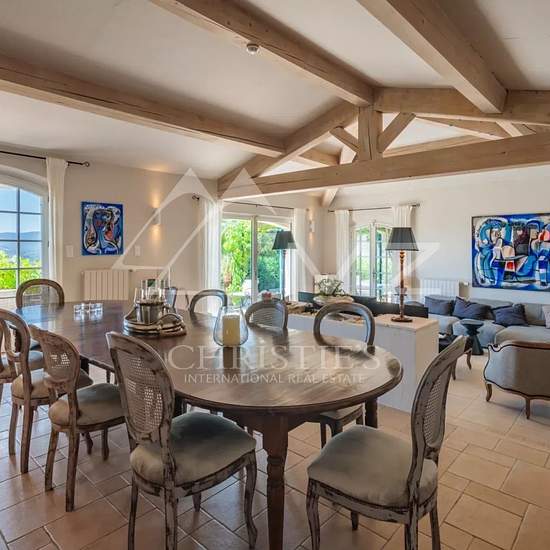 Cette jolie villa provençale récemment classée 5 étoiles, située sur les hauteurs de Grimaud, avec sa piscine chauffée à débordement et son jardin arboré est composée d'un salon, salle à manger, une cuisine, 5 chambres avec 5 salles de bain ou douche et dispose d'une belle vue mer. Numéro d'agrément : 899M1